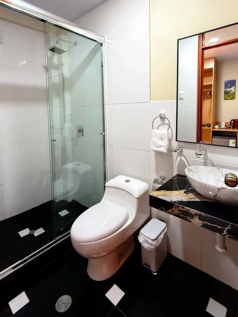 ¡Esto ha sido muy apreciado por la mayoría de nuestros clientes, especialmente por nuestros excursionistas, que quieren un baño privado, limpio e higiénico! Las instalaciones sanitarias de SPIDER Travel Perú cuentan con una carpa individual y un baño camping con asiento. Echa un vistazo a la imagen, que ilustra cómo instalamos nuestro baño de campamento en la caminata usando este enlace: imagen de la carpa del baño. Nuestro baño siempre está instalado a una distancia cómoda de nuestro campamento. Por la noche, si necesita usar el baño, es de fácil acceso y está limpio, a diferencia de las instalaciones proporcionadas por el gobierno que pueden estar sucias.